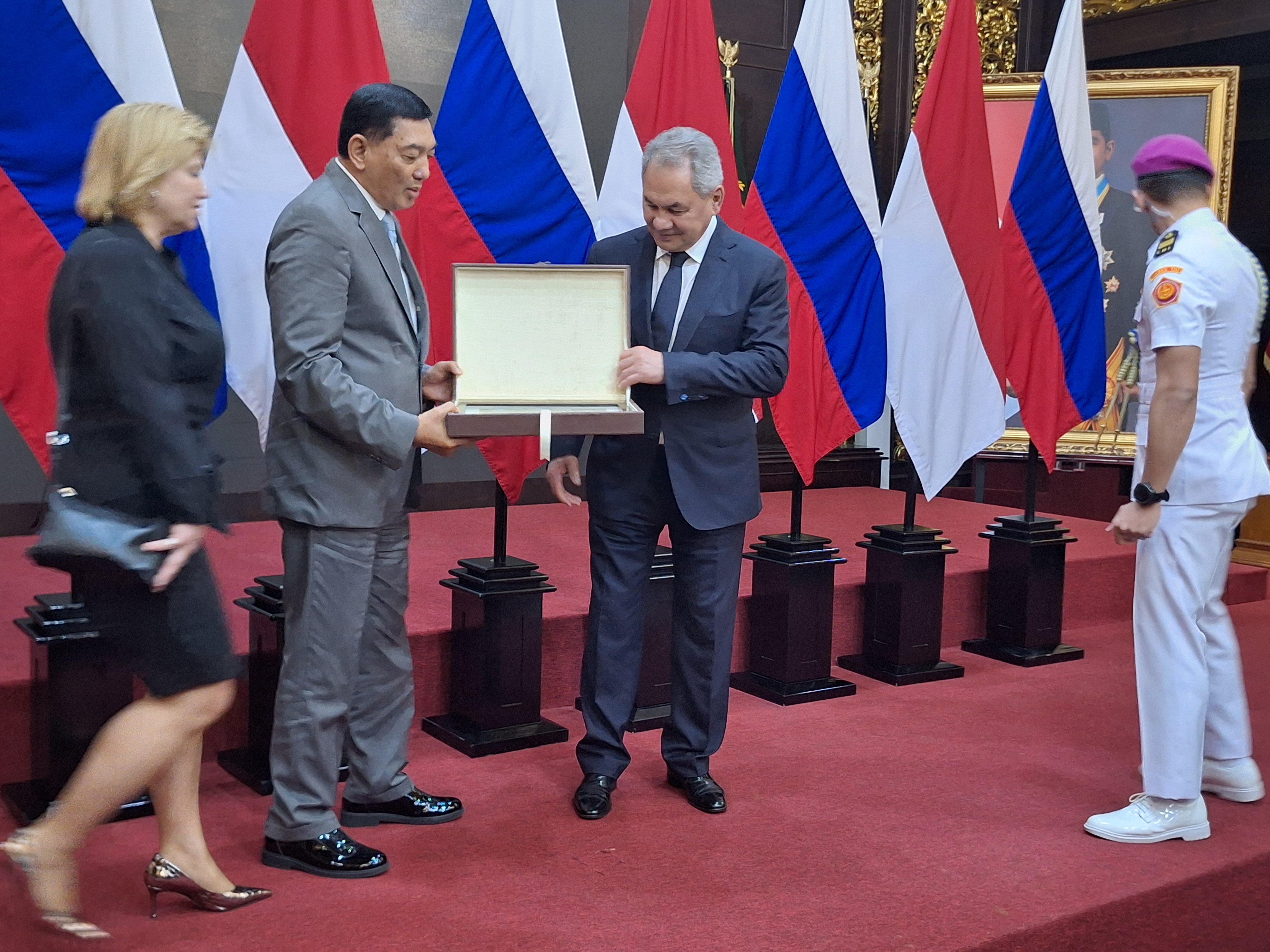 В Джакарте С.К.Шойгу был принят Президентом Республики Индонезии Прабово Субианто, которому передал послание Президента Российской Федерации Владимира Путина с приглашением посетить Москву. Подтвержден настрой на расширение сотрудничества в политической, военной, энергетической, торгово-экономической, гуманитарной и других сферах.