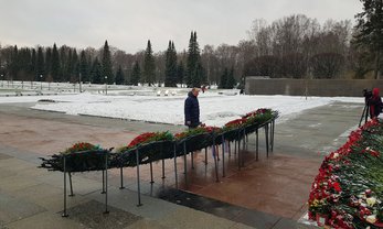 Секретарь Совета Безопасности Российской Федерации Николай Патрушев возложил венок и цветы к мемориалу «Мать-Родина» на мемориальном Пискаревском кладбище