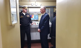 Секретарь Совета безопасности РФ Николай Патрушев во время рабочей поездки в Санкт-Петербург посетил предприятие компании "Эмпериум", которая выпускает электрические пассажирские суда и различное оборудование для них