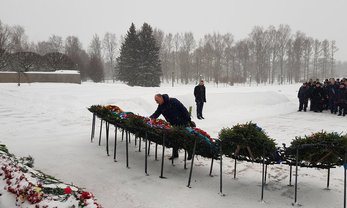 В Санкт-Петербурге Секретарь Совета Безопасности России Николай Патрушев возложил венок и цветы на мемориальном Пискаревском кладбище в память о жертвах блокады Ленинграда в годы Великой Отечественной войны