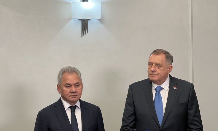 Касаясь кризисных событий в Боснии и Герцеговине, он отметил, что ситуация в Республике Сербской достаточно напряженная. «Данная ситуация стала следствием деятельности западников, направленной на разрушение системы баланса интересов трёх государствообразующих народов страны и двух энтитетов Боснии и Герцеговины. Хочу заверить, что рассматриваем обвинительный приговор Вам по сфабрикованному уголовному делу о неисполнении решений высокого представителя как неправосудный», - сообщил С.Шойгу. Он также отметил, что этот акт вмешательства западников в судебную систему Боснии и Герцеговины является ключевым элементом курируемой Лондоном и Берлином кампании, нацеленной на устранение неугодных Западу лидеров. «Мы надеемся на то, что меры, которые принимаются вами и поддерживаются нами, дадут свой результат», — сказал Сергей Шойгу, обращаясь к Милораду Додику. Он обратил внимание, что «отчетливо прослеживается цель сокращения значимости сербского фактора в регионе и осложнение взаимодействия сербов с Россией».