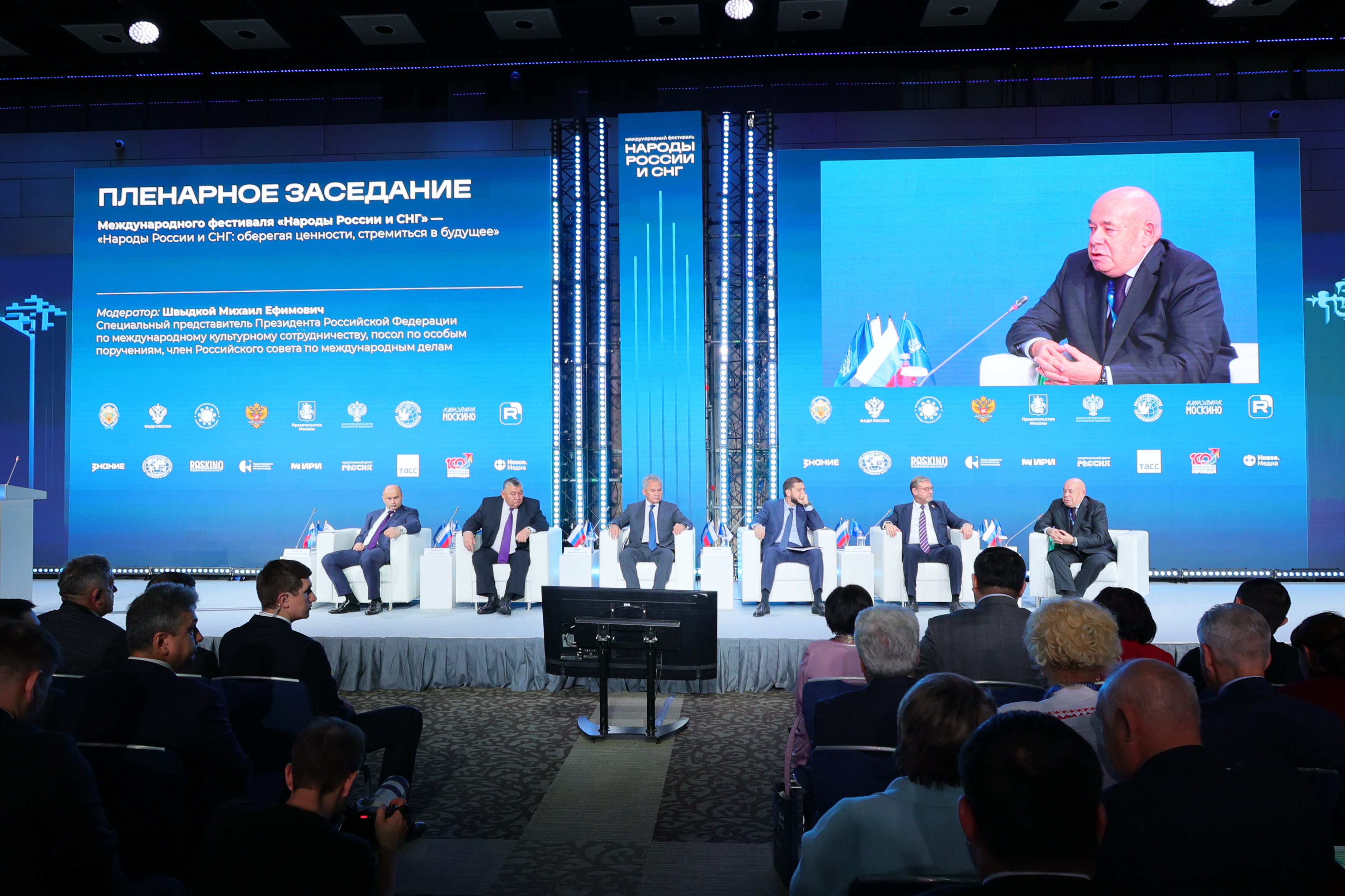 Модератором пленарного заседания выступил Специальный представитель Президента Российской Федерации по международному культурному сотрудничеству Михаил Швыдкой, также в заседании приняли участие Заместитель Председателя Совета Федерации Российской Федерации Константин Косачев, Руководитель Федерального агентства по делам национальностей Игорь Баринов, Чрезвычайный и Полномочный Посол Республики Беларусь в Российской Федерации Александр Рогожник, Государственный секретарь Кыргызской Республики Марат Иманкулов.