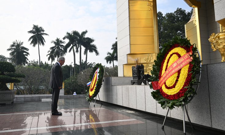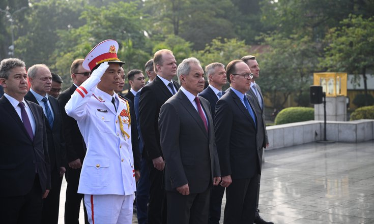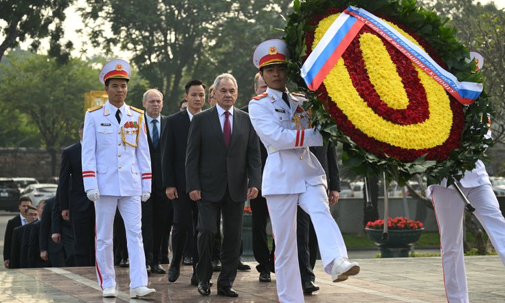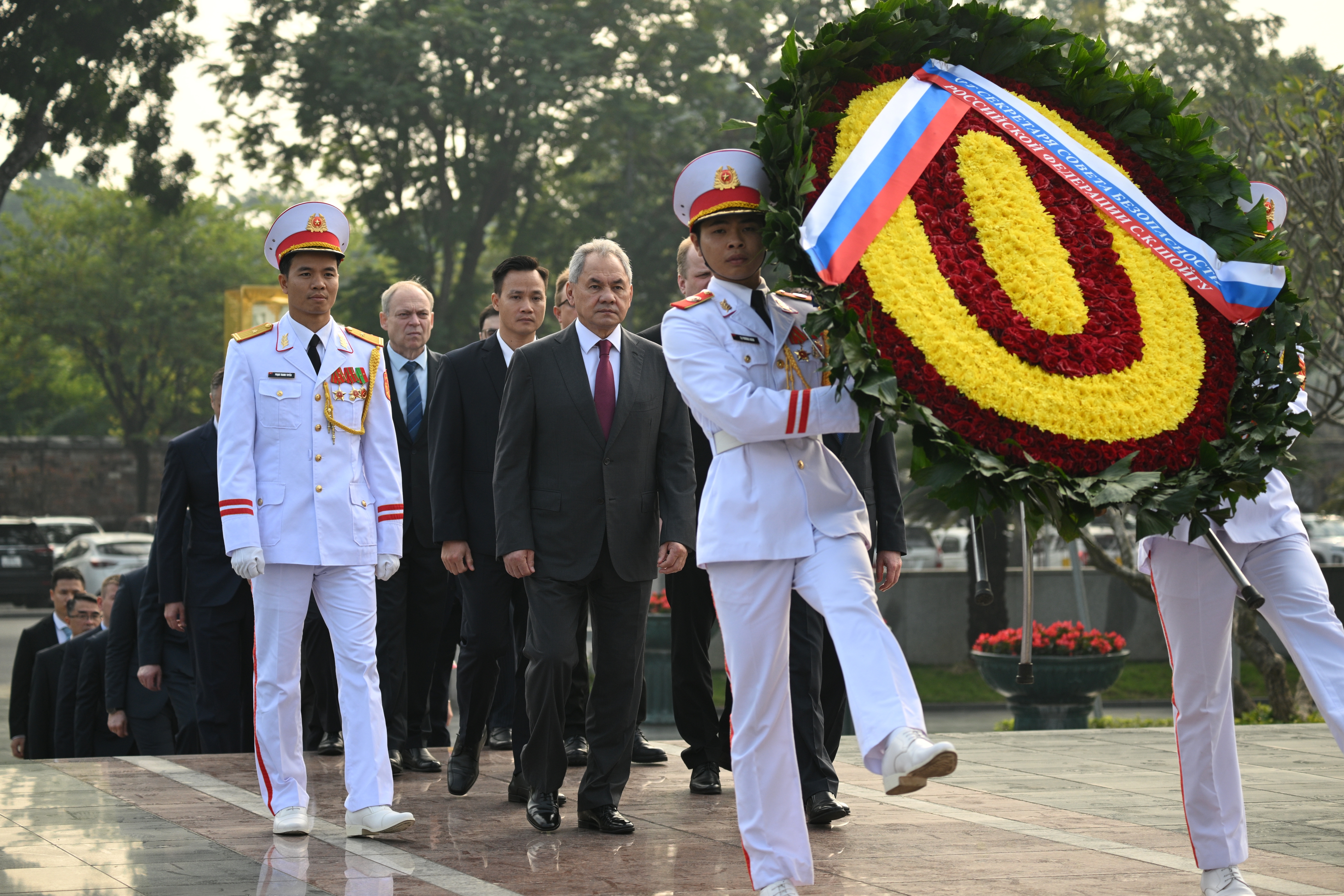 9 декабря в ходе рабочего визита во Вьетнам Секретарь Совета Безопасности России Сергей Шойгу возложил цветы к Памятнику павшим героям и почтил память основателя вьетнамского государства Хо Ши Мина.