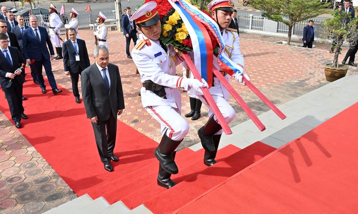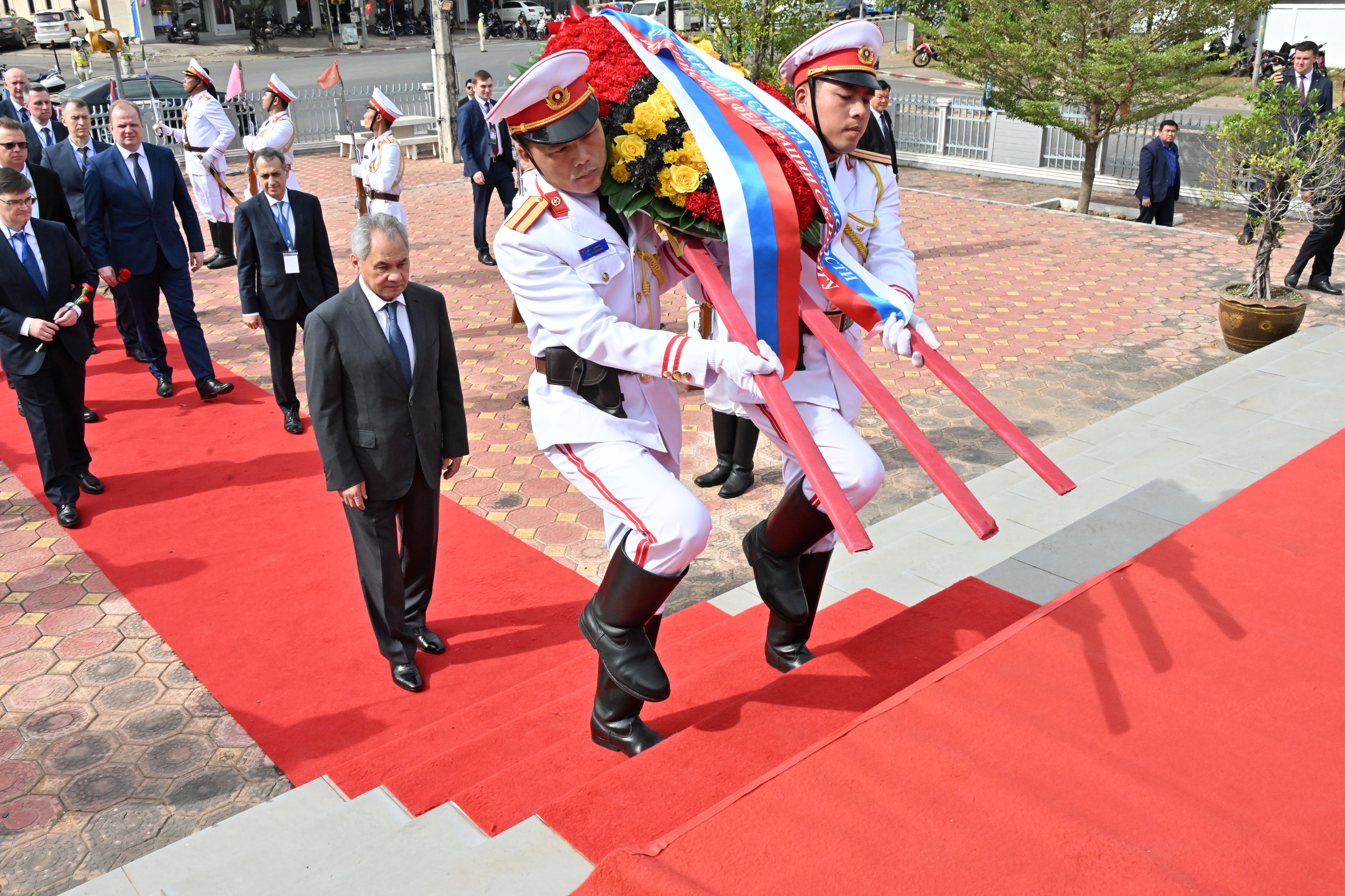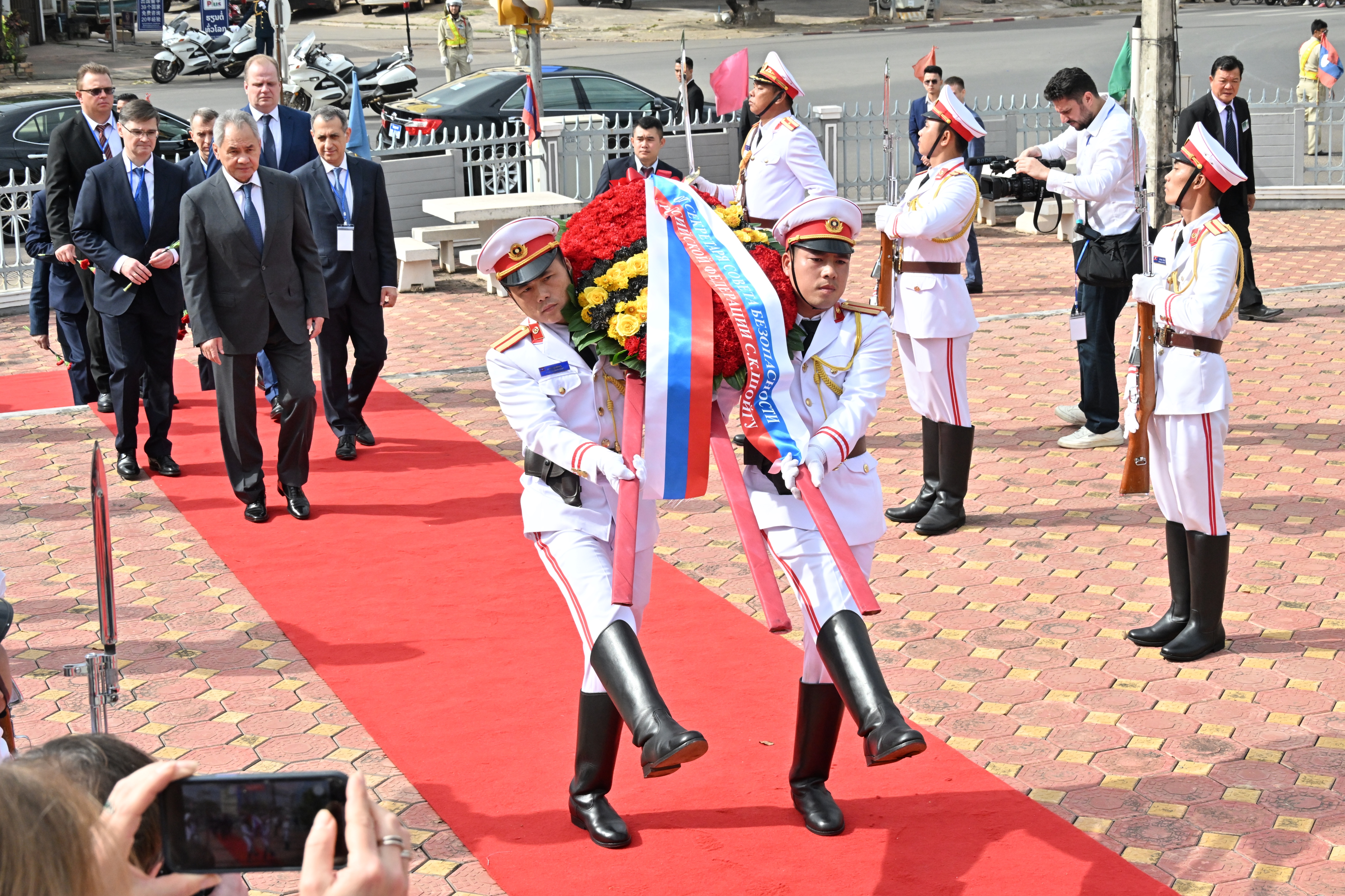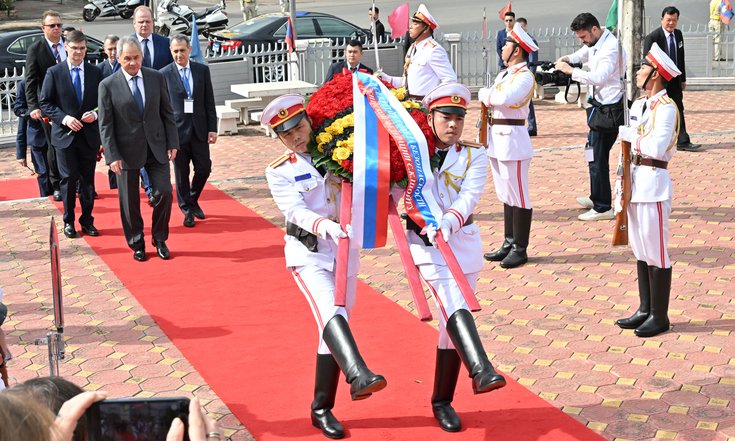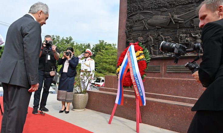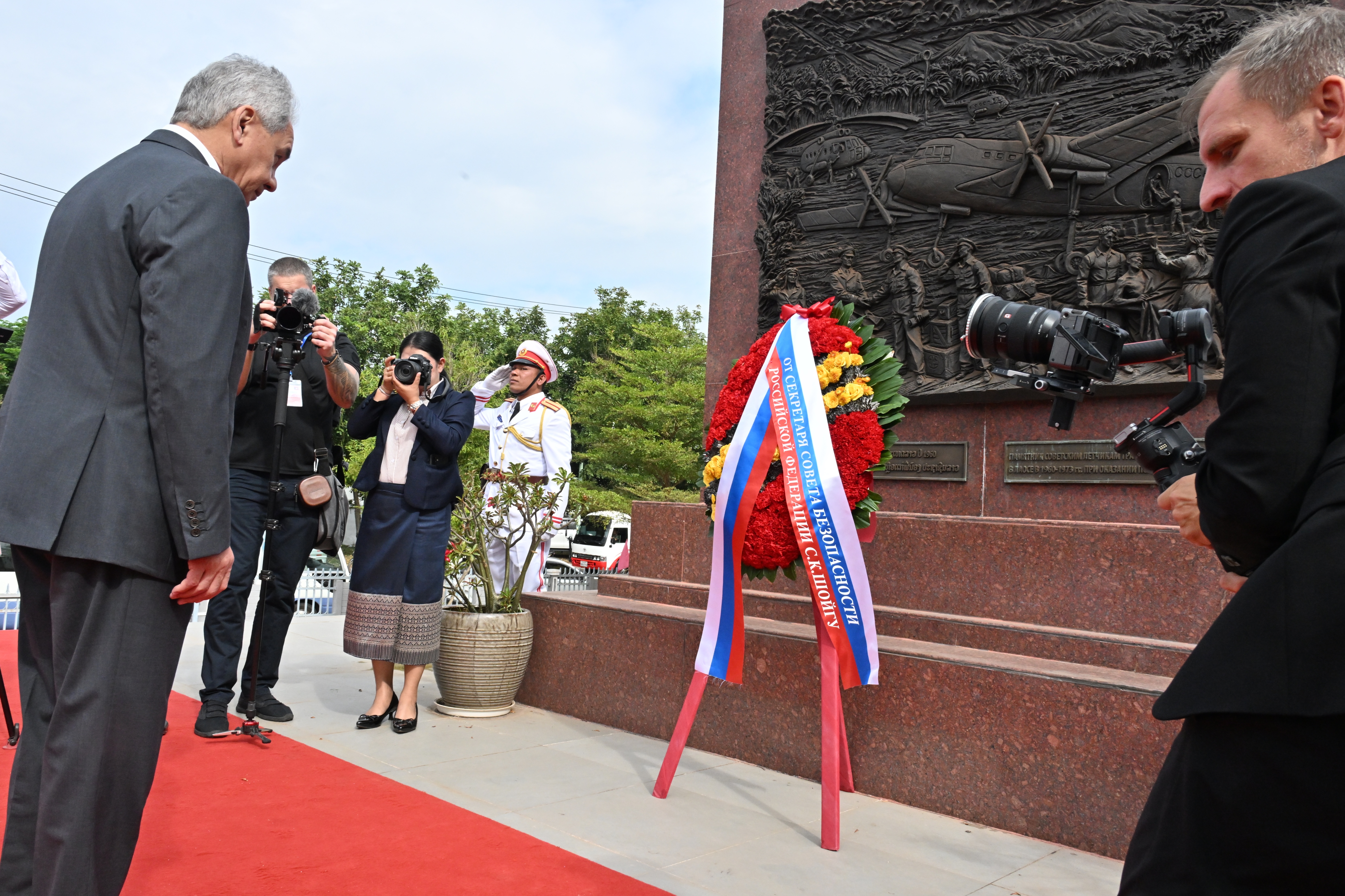 11 декабря во Вьентьяне Секретарь Совета Безопасности России Сергей Шойгу, прибывший в Лаос во главе межведомственной делегации, начал рабочую программу с возложения венка к памятнику советским летчикам, которые помогали странам Индокитая во время агрессии США.